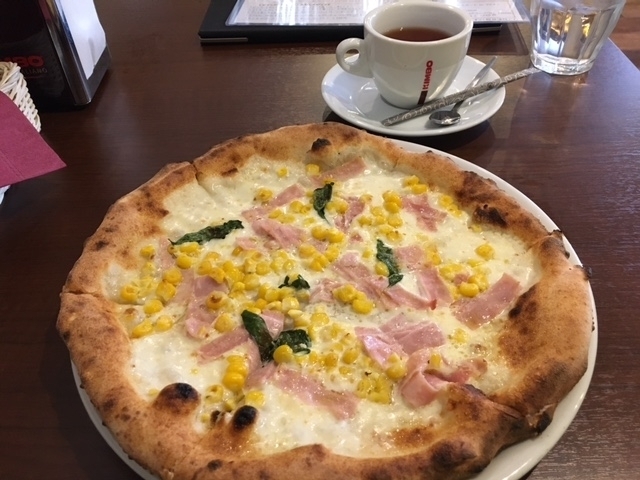 ピッツァはとてもボリューミーで、ドリンクもついています。