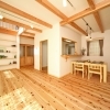 伊丹市千僧モデルハウスでは、部屋ごとに3種類の無垢床材(パイン・オーク・スギ)と、2種類の塗り壁を使い分け、雰囲気や肌ざわり、質感の違いを体感できます。